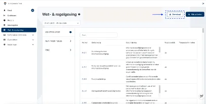 Het overzicht van de Verklaring van Toepasselijkheid is nu beschikbaar als pdf-bestand. Ga naar de pagina “Wet- & regelgeving” en klik rechtsboven op “Verklaring van Toepasselijkheid”. Daar vind je ook de downloadknop, rechtsboven in beeld.